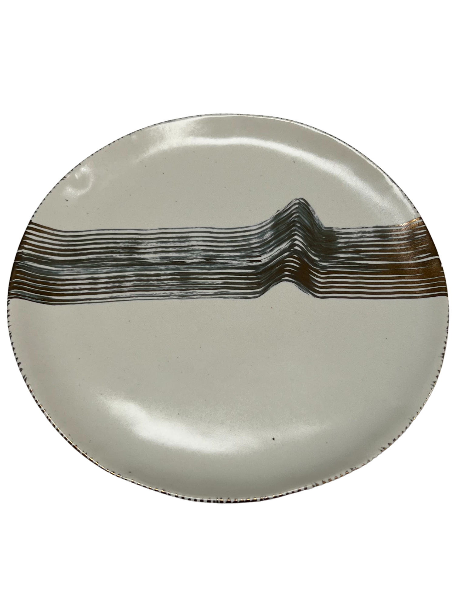 צלחת זו עשויה בעבודת יד מחימר לבן מאוד, מזוגגת סאטן לבן , מעוטרת זהב ביד חופשית .